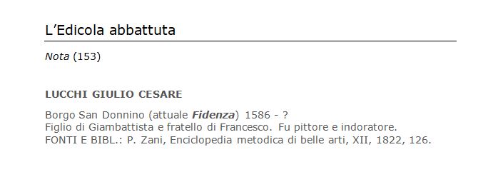 Il dipinto, olio su tela, ha come soggetto la Madonna del Carmelo con Gesù Bambino, Sant'Isidoro e Santa Giuliana. L'Autore è Lucchi Giulio Cesare, ambito parmense, che lo ha realizzato nel secolo XVII (1600-1624).