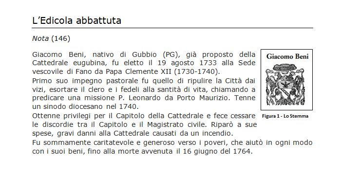 Nel 1736 il vescovo di Fano Giacomo Beni aveva posto la chiesa nella giurisdizione del quartiere Roncosanbaccio e tale rimase fino al 1914 quando, per volere del vescovo Vincenzo Franceschini, fu affidata alla cura dei Padri Agostiniani della nuova parrocchia di San Giuseppe al Porto.