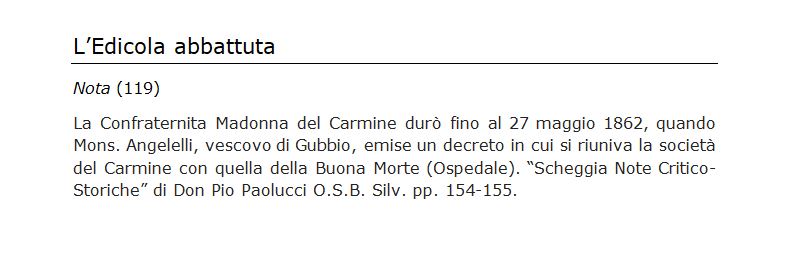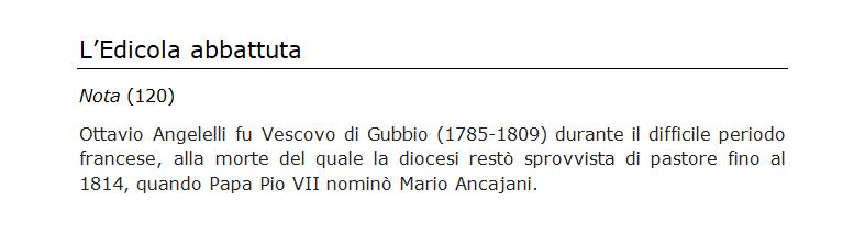 Questi avvenimenti furono oggetto di una inchiesta ufficiale da parte di S.E. Mons. Angelelli, il quale ne autorizzò la pubblicazione in una relazione apposita datata 21.8.1796 e stampata a Foligno nella tipografia Feliciani e Campitelli.