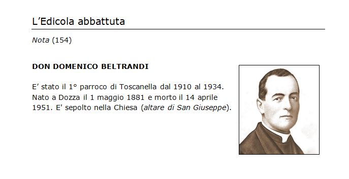 Il 9 ottobre 1924, alle 7,00 del mattino, venne celebrava la prima S.Messa nella nuova Chiesa che don Domenico Beltrandi, aveva voluto per sostituire la precedente ormai cadente.